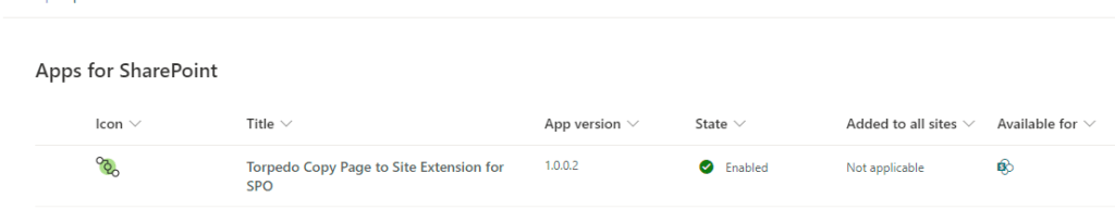 - Activating the Extension – Navigate to the Site Contents page of your SharePoint Online site to activate the Torpedo Copy Page Site Extension seamlessly.