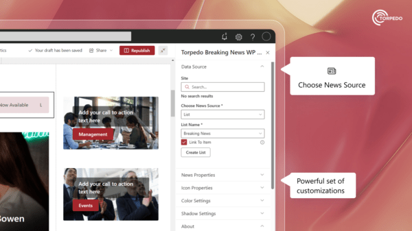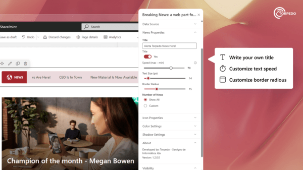 - Fonte de Conteúdo Flexível: Escolha entre uma lista de SharePoint, biblioteca de documentos ou biblioteca de páginas como fonte de conteúdo para o seu slider, oferecendo flexibilidade para destacar vários tipos de informação.